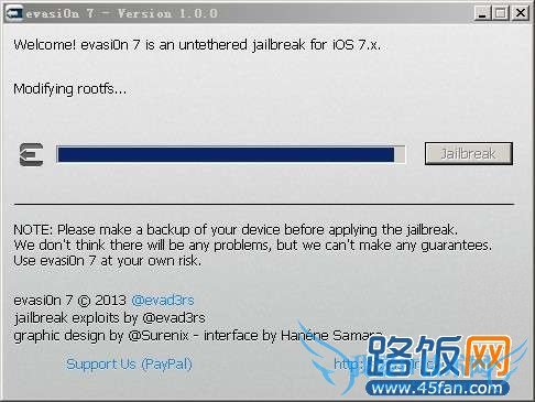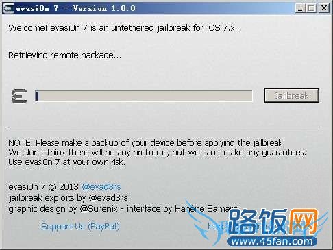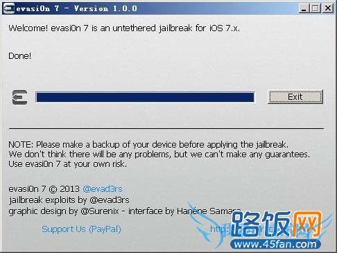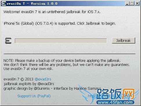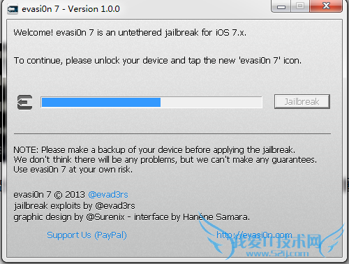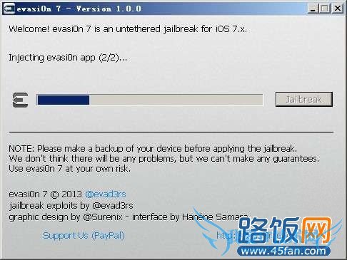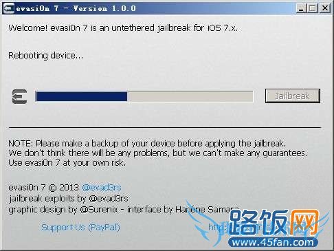 iOS7完美越狱工具evasi0n7还存在众多bug极其不稳定,绝大部分越狱插件还不支持,切勿急于越狱。该工具对外号称是支持全系iOS设备,但是经大量果粉朋友亲测后发现,目前该越狱工具存在诸多重大BUG,极其容易出现白苹果,越狱后可能出现黑屏、死机等异常状况。