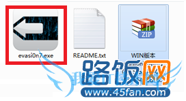 3、先关闭itunes,下载越狱工具并解压。点击”evasi0n7.exe“,打开越狱工具。如果是windows7的话,右击”以管理员身份运行“。