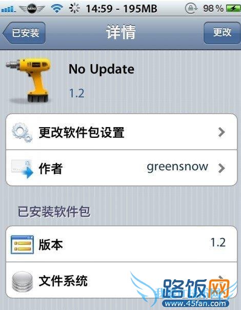 插件安装方法:我们只需要在Cydia里面搜索noOTA badge(等待整个Cydia加载完成才可以看到,因为是新的插件)。然后安装后就可以看到那个更新提示已经去掉,他没有桌面图标,在设置也是看不到。