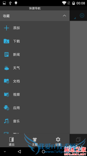 应用APP界面与底部右侧滑动呼出的快捷开关