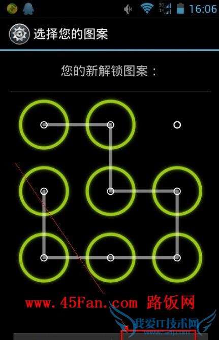 7、当然不光是密码锁,还可设置图案锁方式,目前使用图案锁的用户较多,前三个步骤不变,进入到屏幕锁定选项下选择【图案】即可。如下图所示: