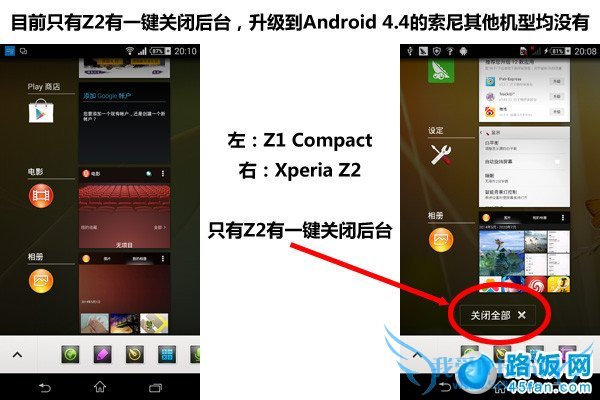 这里还需要提醒的是,奢侈的“一键关闭后台”功能仅限Android 4.4版本的Xperia Z2所拥有,与Z2同时发布的Xperia M2、Xperia T2新机型都不具备此功能,而且把Xperia Z1或者Z1 Compact升级到官方Android 4.4版本,也没有出现“全部关闭”按钮。如果你是一个骨灰级的索尼强迫症用户,千万记得暂时只有Z2有此功能,Z1和Z1 Compact升级是没有这个功能的。咱就不批评了,希望以后会有更新吧!