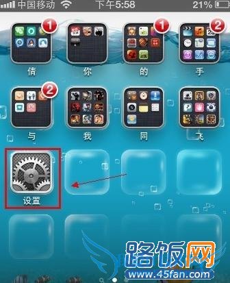 1、进入iPhone4S主屏幕,轻触设置选项。如下图所示: