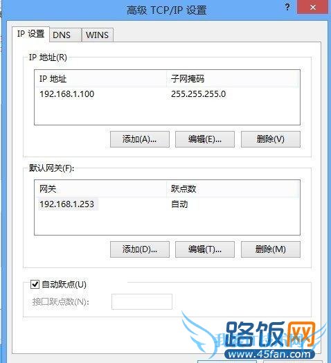 单击“高级”按钮,即可进入“高级TCP/IP设置”。在“IP设置”中,可以给网络设备设置多个IP地址、子网掩码和默认网关。Windows 8将会自动进行逐一匹配最合适的。