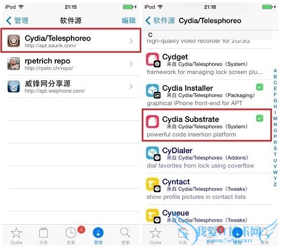 目前 Cydia Substrate 已上架 Cydia自带的Cydia官方源,已经完成 iOS 7 越狱的朋友赶快去安装更新吧。打开Cydia→点下面的“变更”→再点左上角的“刷新”→等刷新加载完后就看到有更新了,全部更新就可以了。
