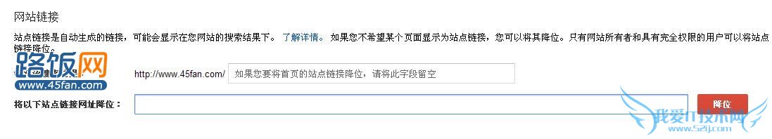 当然,如果您觉得图片过小,也可以"点击这里"查看显示效果。笔者随后登陆了Google管理员工具,据谷歌自己的解决为:站点链接是自动生成的链接,可能会显示在您网站的搜索结果下。 了解详情。 如果您不希望某个页面显示为站点链接,您可以将其降位。只有网站所有者和具有完全权限的用户可以将站点链接降位。