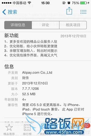 欢迎您访问52ij手机之家,今天小编为你分享的是手机知识是:【iPhone版支付宝发布更新 更新后闪退,删除后无法下载】,下面是详细的分享!