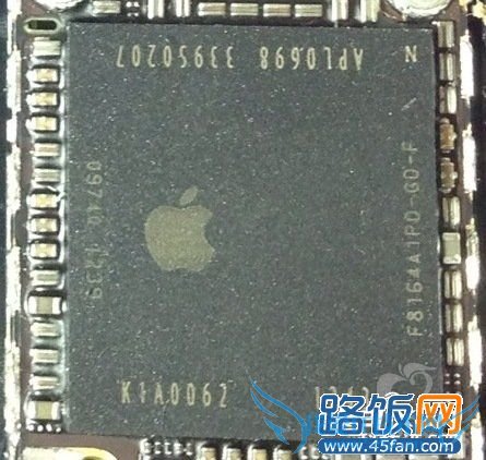 此次得出iPhone 5S所使用的是A7处理器的主要依据来自处理芯片型号,通过曝光的照片我们可以看到iPhone 5S所配备的处理器芯片的型号为APL0698,这与A6处理器的型号APL0598有着明显的差异,并且也与iPad 4所采用的A6X处理器的型号APL5598完全不同。