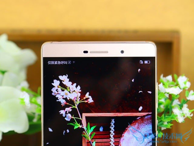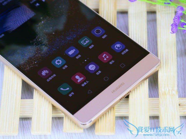 在屏幕顶部可以看到置于听筒右侧的500万像素前置镜头,而在屏幕底部依旧没有任何按键,显然采用了与P8一样的“隐藏”虚拟按键式设计,摸上去和背部一样细腻,而与P8所不同的是华为P8max将品牌的英文字样居中,这样做似乎让上下两端看上去更为协调,为华为P8max整体效果添色不少。