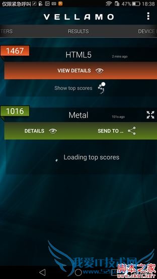 Vellamo是由Qualcomm(高通)开发的一个基准测试应用,它可以让你对手机浏览器的性能及稳定性进行测试,包括像Java脚本性能、渲染、联网和用户界面等。该工具的结果同样包括多个子项,但我们只取总成绩,分数越高则表明手机对浏览器的优化程度越高,网页浏览体验更好。从测试结果来看,华为P8max这方面的表现不错。