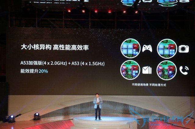 华为P8max的这颗芯片采用四个2.2GHz主频的A53核心+四个1.5GHz主频A53核心,big.LITTLE大小核设计。和ARM Cortex-A53无法运行在高主频上不同,华为在Cortex-A53的基础上自主研发了Library,形成了全新的A53架构,使得处理器能稳定运行在2.0GHz上,同时也让新的A53核心成为了主要的大核心,这一大小核异构能够大大提升手机的性能。