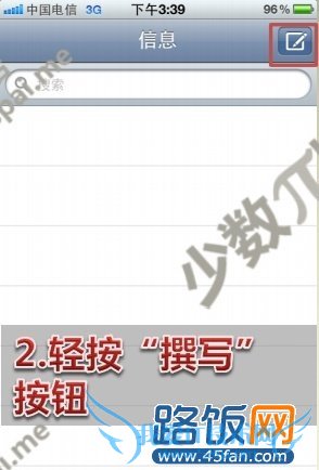 2、轻触“信息”界面右上角“写字笔图标”。如下图所示: