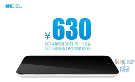 据悉,魅族630限量购活动专场将于6月30日星期一中午12点在魅族官网在线商店准时开放购买,魅族MX3联通版16GB售价仅630元,每人限购一台,提交订单后在72小时内必须付款。