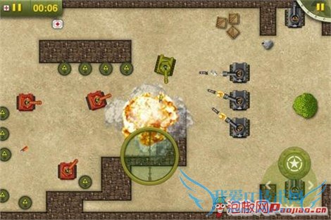 可以看到,迷你坦克Tiny Tanks的游戏画面是非常出色的,游戏拥有各式各样的敌方坦克、爆炸桶、卫生包,各种娱乐元素让这款游戏充满了可玩性。而且,迷你坦克Tiny Tanks的操作非常简单,左手控制方向键,右手操作开火,绝对非常的刺激,凌少吐血推荐。