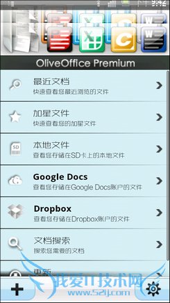 OliveOffice:支持打开储存在Google及Dropbox账户的文件。在本地文件的管理方面,通过添加星号来标记文件,以达到快速浏览的目的。