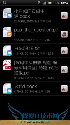 参测软件:Documents To Go、WPS Office、OfficeSuite5 Pro、Picsel Smart Office、ThinkFree Office、Quickoffice Pro、OliveOffice、Polaris Office