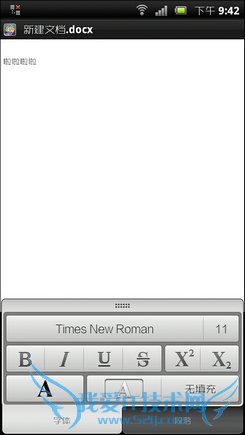 在编辑界面,OfficeSuite5 Pro在顶部和底部都设计有工具栏,但是底部的工具栏在输入法开启后会被遮挡,感觉不是很合理。在笔者使用中,发现了一个有趣的功能,那就是在编辑文本时,可以设置红蓝3D显示,如果有3D眼镜就可以看出立体感。不管这功能是否实用,但很好玩是肯定的。