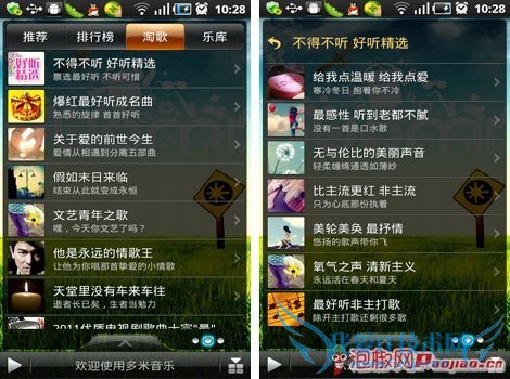 多米音乐v2.3版-淘歌频道(各种不同分类的歌曲合辑推荐,想听什么,随便淘)