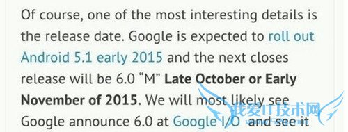 而根据最新的消息表明,谷歌预计将于2015年初发布Android 5.1系统,随后于10月或者11月份发布Android 6.0系统。Android 6.0首次与大家非正式见面的时间或为明年6月份的Google I/O大会。