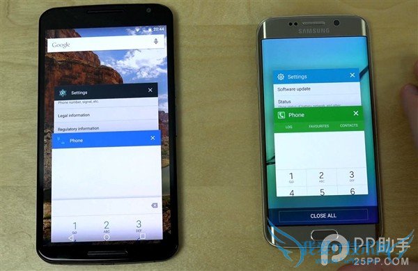 开机速度上,S6 edge占优,流畅性上,也不输原生安卓。评测人还指出,拿多任务卡片来说,棉花糖仍然不支持一键清除,略显遗憾。