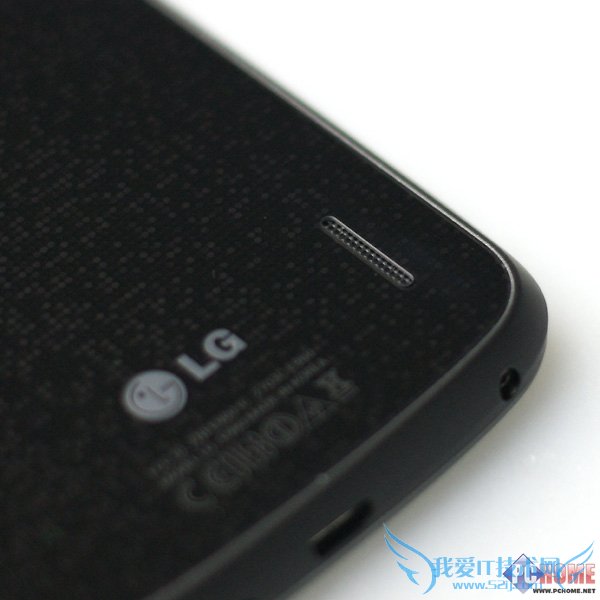 机身背面底部,倒是和以往Nexus手机一样印上了制造商LG的标志,下面还有手机的具体型号的文字信息LG E960,并且是MADE IN KOREA的产品。文字信息的右侧,是一个略带山寨味的扬声器,大大的开孔被网罩覆盖,与手机整体的精致感不是很搭调。
