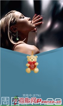 美女锁屏是一款相对比较可爱也比较诱惑的锁屏桌面。一位美女被蓝色遮羞布给挡着,用户需要拉动布块上的小熊才能解锁。可以看到,锁屏桌面上还有日期时间以及电量百分比显示。