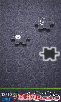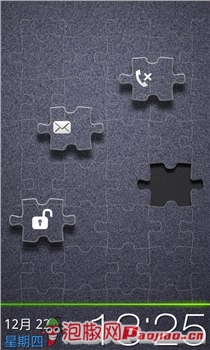 一款非常具有创意的锁屏主题。整个手机锁屏界面变成了一个拼图,用户只要拉动悬浮着的三个拼图的其中一个到缺失一块拼图的地方就能够解锁。锁屏界面的下端显示有时间与日期,整个界面看上去非常时尚,挺不错的。