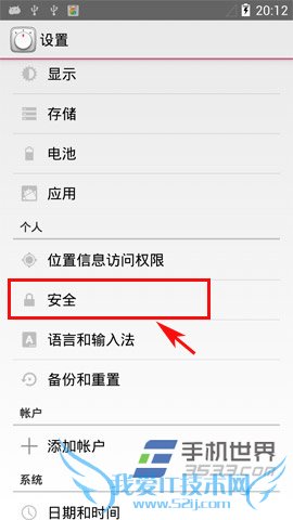 1)首先,点击“设置”菜单进入,在“设置”菜单栏里点击“安全”进入。(如下图所示)