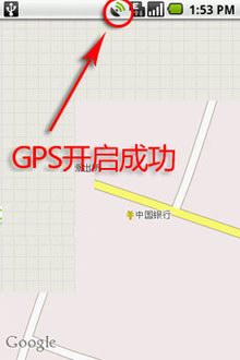 这里我们进入后,选择Enable GPS satellites(启用GPS卫星)这项即可,这样你的Android手机就通过内置的GPS导航芯片开始接收卫星数据,如果说你的手机不是Google手机联盟厂商的机型,而是一些山寨厂商制造没有集成GPS芯片,则没有任何效果,判断GPS全球定位正常工作,可以进入Google Maps地图程序,看见状态栏上由一个绿色的卫星接收图标即可表示开启成功,支持全球定位功能,如图: