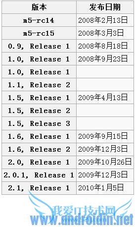 下一个版本的Android将会命名为Froyo(冻酸奶,基于Linux Kernel 2.6.32)。Froyo 之后的版本的Android将会命名为Gingerbread(姜饼,基于Linux Kernel 2.6.33/34)。