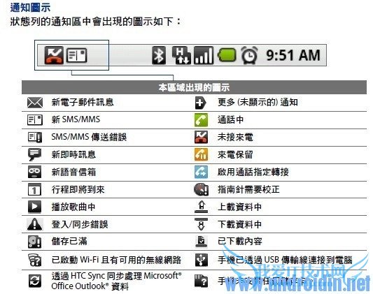 通知图示会在收到新讯息、设定了行事历行程、闹钟,以及启动来电转接等持续性设定时显示,同时也会显示目前的通话状态。您可以开启通知面板,以开启讯息、提醒或行程通知,以及检视电信业者的名称。