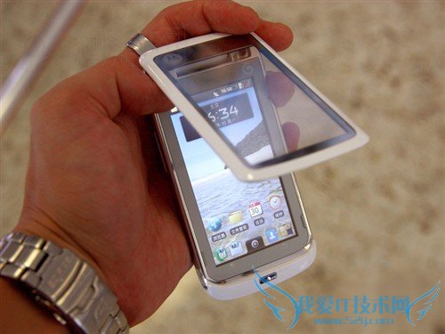 代号为“北海”的摩托罗拉“明”系列MT810,最大的特色就在于外屏幕触控操控,毕竟以前的手机,哪怕很“透明”,可依然需要翻盖之后才能直观操 控,而 摩托罗拉的这款MT810则不用,该机内屏为电阻式屏幕,外屏通过类似投影的技术映射内屏幕,操控感受类似于电容屏幕,应该说是非常的先进。