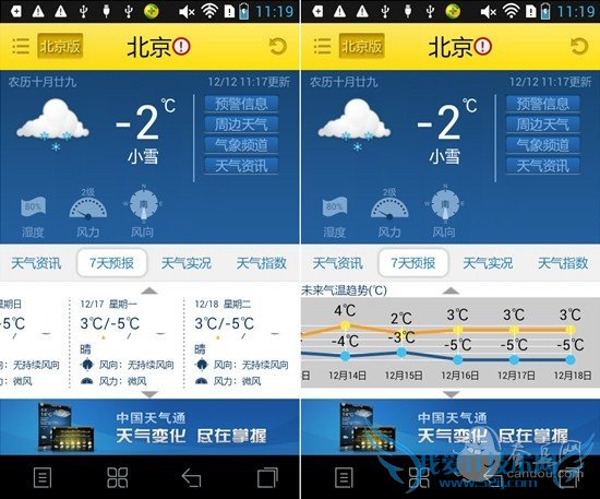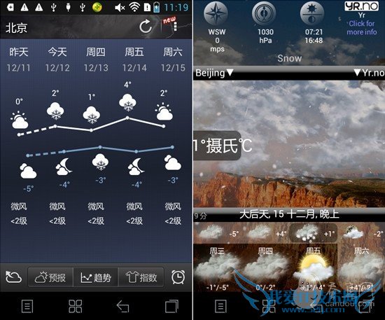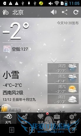 到了单位,小编发现自己手机上的天气应用居然还显示的是目前阴天,要知道外面的地上可都白了好不好!于是小编决定,借着今天适宜的条件,咱们正好来评测一下Android平台上常用的天气软件,看看究竟哪款才能让我们真正做到“尽知天象”。
