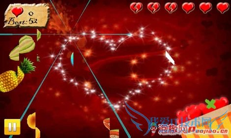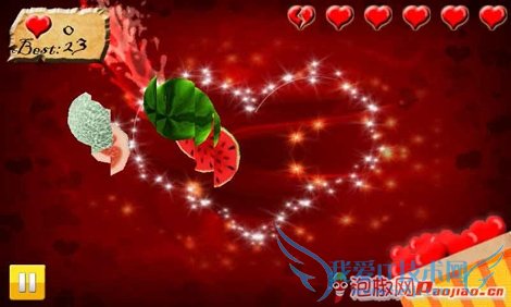 卡卡水果忍者情人节并非官方正版的水果忍者,不过山寨同样精彩。虽然比正版切水果的游戏性要差一点,作为情人节特别版的作品,游戏的耐玩性和创意都值得称赞。