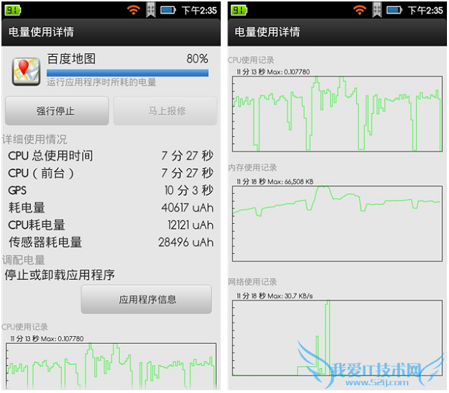 11分钟后,我这才意识到在不需要的时候关闭定位的重要性,百度地图再不断的定位中消耗了40617μAh,几乎是金山电 池医生这类小软件的百倍,让人惊叹。