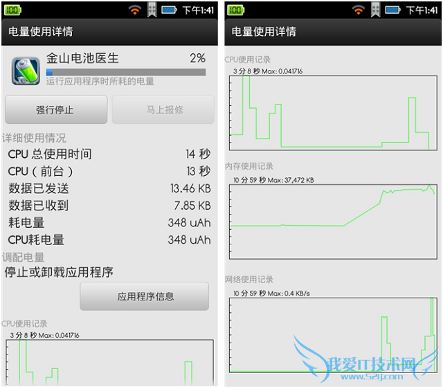 运行约11分钟后,发现电池医生对CPU的占用出奇的低,耗电量竟然只有348μAh,相信这点耗电几乎不会让用户有所感 知,相比于节省下来的电,简直是九牛一毛。