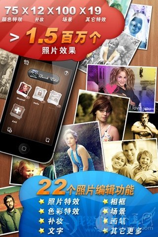 内置了多款可更换“镜头”(四格LOMO、二格镜头、拼图镜头、微缩景观镜头、传统镜头、GIF短视频镜头),并具备单反相机单独对焦和测光的高级功能;照 片自动美化处理:可以对照片即时进行颜色处理、装饰、边框等美化功能,超过40种后期自动“PS”功能,尤其适合喜欢摄影、捕捉生活点滴、喜欢LOMO、 连拍、抓拍等用户群;高级PS美化模式:可在数十款特效美化基础上进入手动PS调节模式,变化出无数种特效,满足您任何的后期需求。