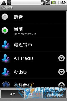 在弹出的铃声设置界面中选择All Tracks,软件会扫描目前存在存储卡和手机里面的所有音乐资源,选中自己喜欢的音乐,点击确认即可设为铃声。