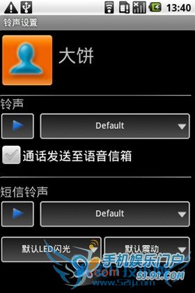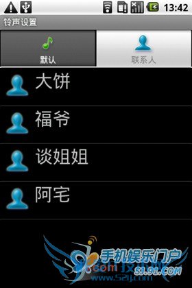 切换到联系人标签,则可以设定联系人铃声和分组铃声,设定方法和默认铃声设置相同,大家可以自己尝试一下。