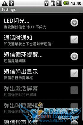 在界面中点击高级设置,可以进行震动、LED闪光、铃声坚强、短信是否弹出显示等多项个性化功能,足够满足日常需求。