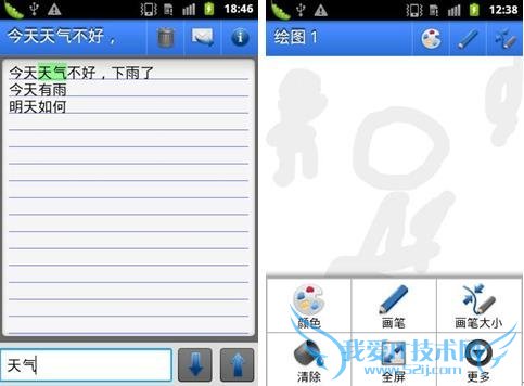 在记事内容编辑方面,Note Everything功能更突出,例如文本记事除编写功能外,可进行内容搜索;绘图记事中,可选择颜色、画笔、全屏等。