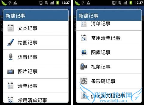 3、Note Everything在记事笔记种类非常丰富,支持文本、绘图、语音、图片、清单、图库、视频、条形码、Google文档等多种记事形式,并可以固定显示记事。