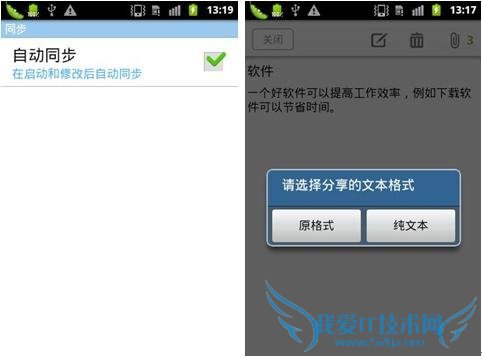 还支持网络同步和笔记分享,在同步时,用户可以设置在启动和修改时自动同步;分享笔记时,可以选择原格式或纯文本格式。