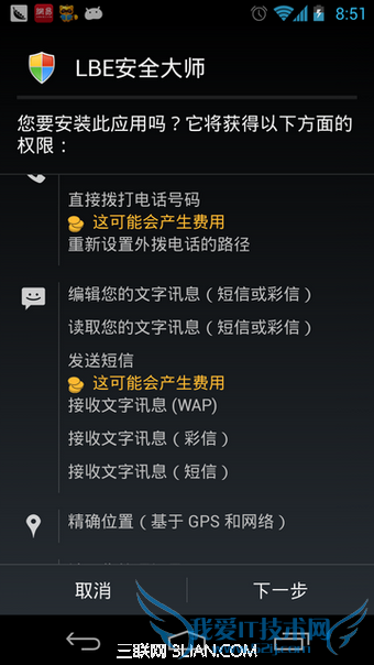 查看权限安装和下载任何应用都应该留意它们所要获取的权限。一般来说你可以通过应用的功能初步判断正常情况下它会需要哪些权限。诸如发送短信、拨打电话等敏感权限尤其要小心。一旦应用越界,宁可不装也不要当小白鼠。当然,你也可以控制应用的权限,具体操作请在本站搜索教程“控制应用权限”。