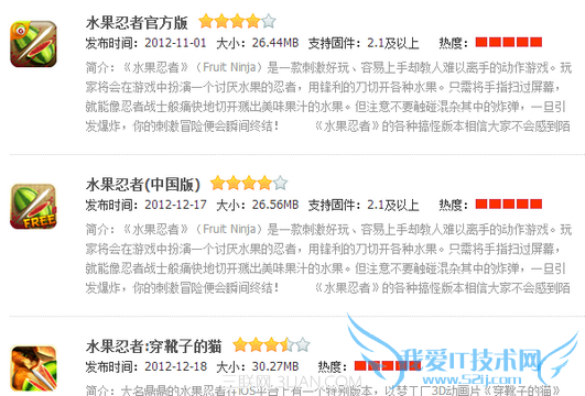 应用体积这一点许多人可能会忽视,某些应用的体积会比正常情况下要小。举个例子,低于1M的水果忍者游戏无论如何也是有问题的,因为1M的容量装不下那么丰富的内容。多浏览几个应用市场自然就明白了。