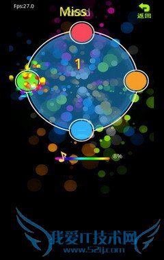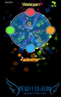 游戏的玩法很简单,游戏中会不断的有各种颜色圆盘从上而下快速移动过来,你需要按相同颜色的按钮将它们消除掉。