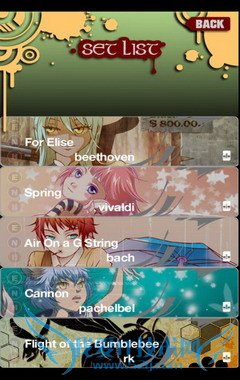 游戏本身自带一些简单的歌曲,玩家们可以通过这些歌曲来练习,当玩家们觉得已经非常简单的时候,就可以自己下载喜爱的歌曲来弹奏了,当然不同的歌曲难度也会不同。
