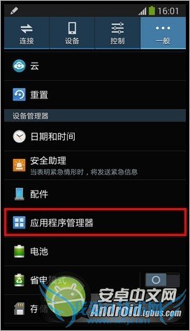 4.向下滑动手机屏幕,点击【应用程序管理器】。