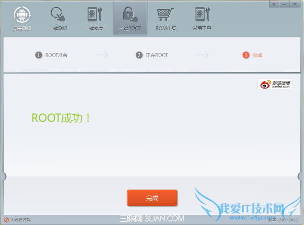 软件此时页面如下图所示,表示软件完成g14 root,请点击“完成”。HTC g14 root教程温馨提示:点击“完成”后耐心等待手机自动重启!