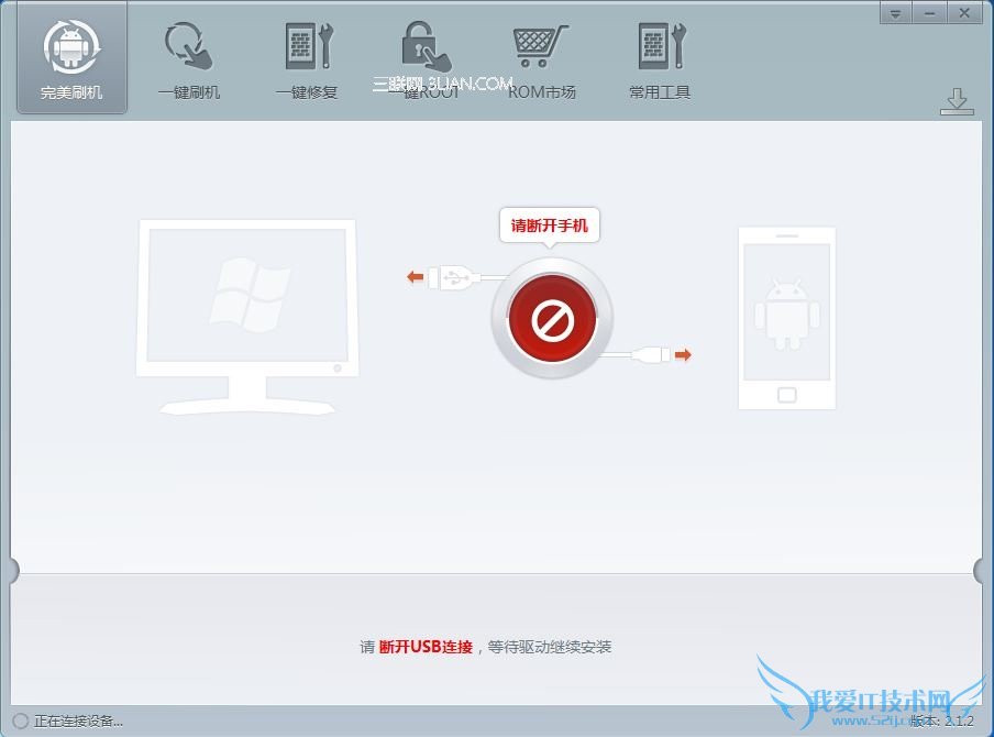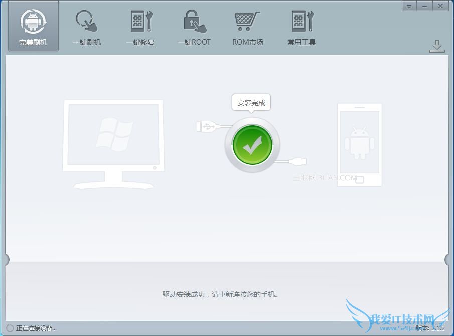 连接好手机与电脑,打开完美刷机工具,连接好手机设备。